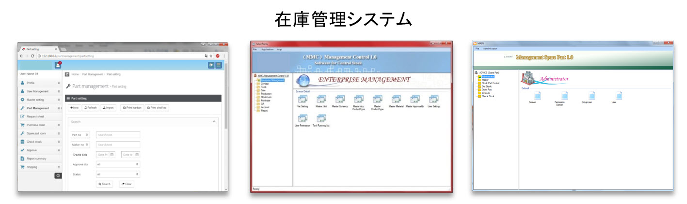 – 在庫管理システム (スペアパーツ/仕上げ品)