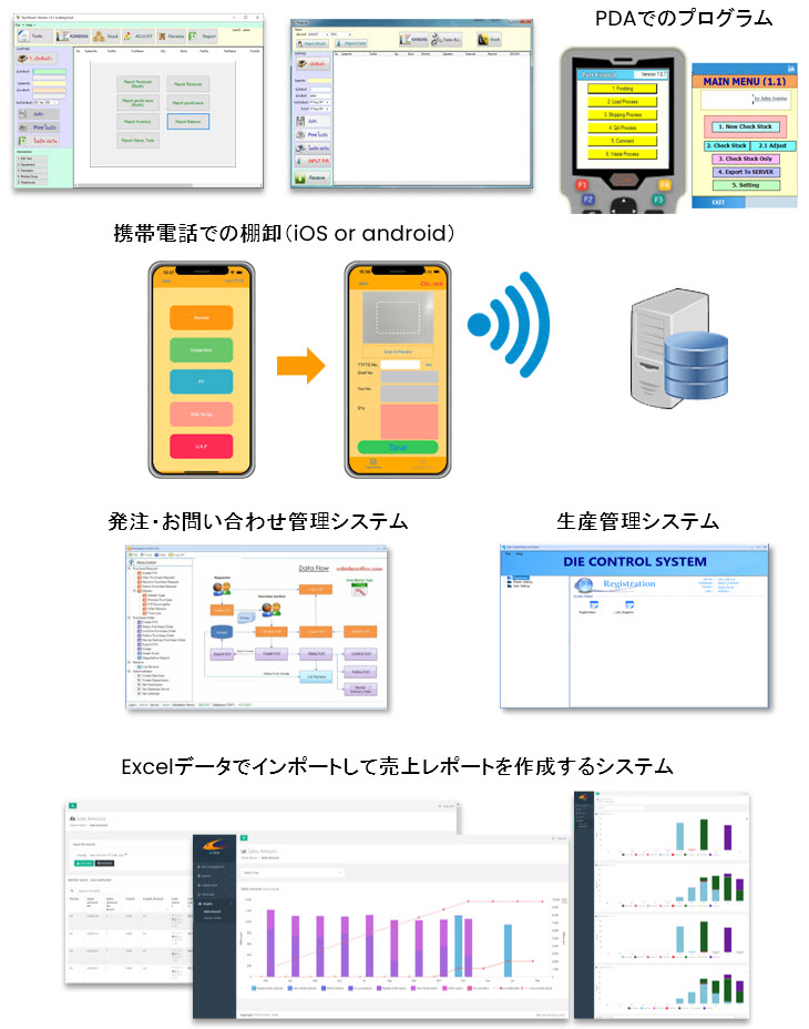 TTFTS には、お客様の作業を便利、迅速、正確にするためにシステムを分析するプログラマー チームがいます。まずはシステム分析からお客様のニーズに合わせてWin/Web、iOS/Androidアプリケーションなどのプログラムを作成します。例えば